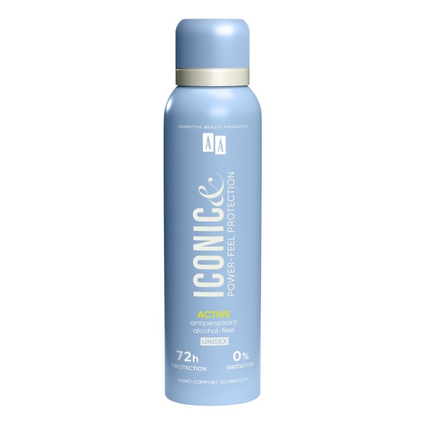 AA Iconic Antyperspirant w sprayu Active to propozycja dla osób prowadzących aktywny tryb życia, które potrzebują bardzo skutecznej ochrony bez podrażnień. Sprawdzi się podczas intensywnego wysiłku, wysokich temperatur i długiego dnia w ruchu.