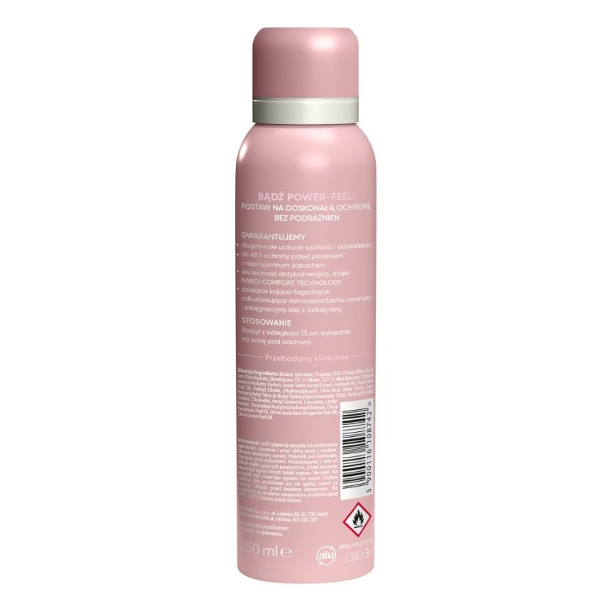 Formuła zapewnia długotrwałe uczucie suchości i świeżości oraz ochronę przed potem i nieprzyjemnym zapachem nawet do 48 godzin. Dzięki Nano-Comfort Technology antyperspirant działa antybakteryjnie, pomagając ograniczyć rozwój bakterii odpowiedzialnych za zapach.