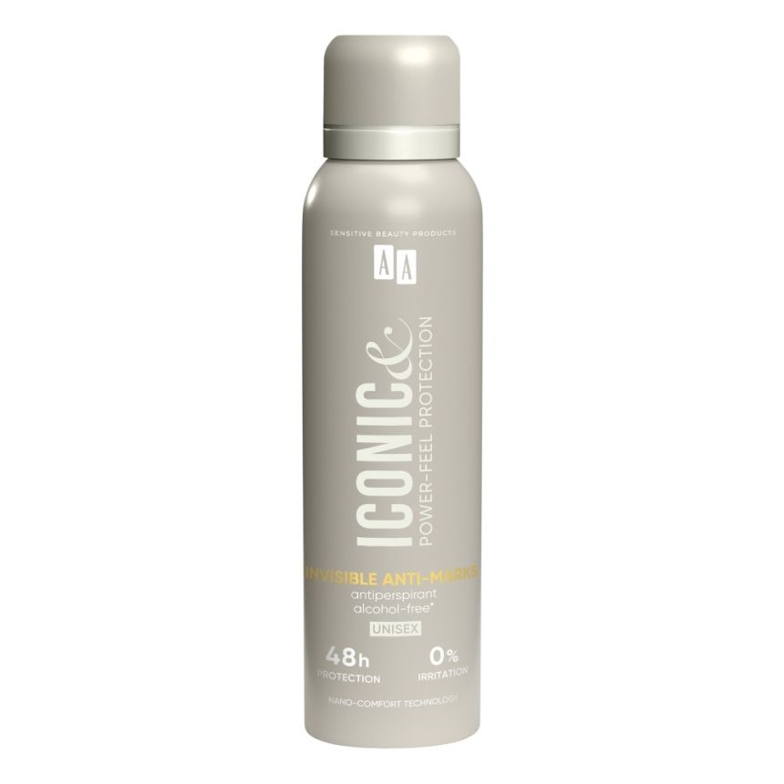 AA Iconic Antyperspirant w sprayu Invisible Anti-marks to rozwiązanie dla osób, które chcą skutecznej ochrony przed potem i zapachem, bez ryzyka śladów na ubraniach. Sprawdzi się zarówno na jasnych, jak i ciemnych tkaninach, zapewniając komfort przez cały dzień.