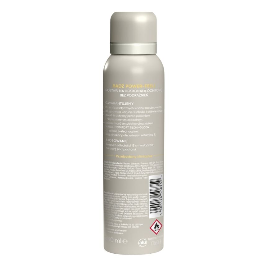 Formuła została opracowana tak, aby nie pozostawiać białych ani żółtych plam, a jednocześnie gwarantować długotrwałe uczucie suchości i świeżości nawet do 48 godzin. Dzięki Nano-Comfort Technology działa antybakteryjnie, ograniczając rozwój bakterii odpowiedzialnych za nieprzyjemny zapach.