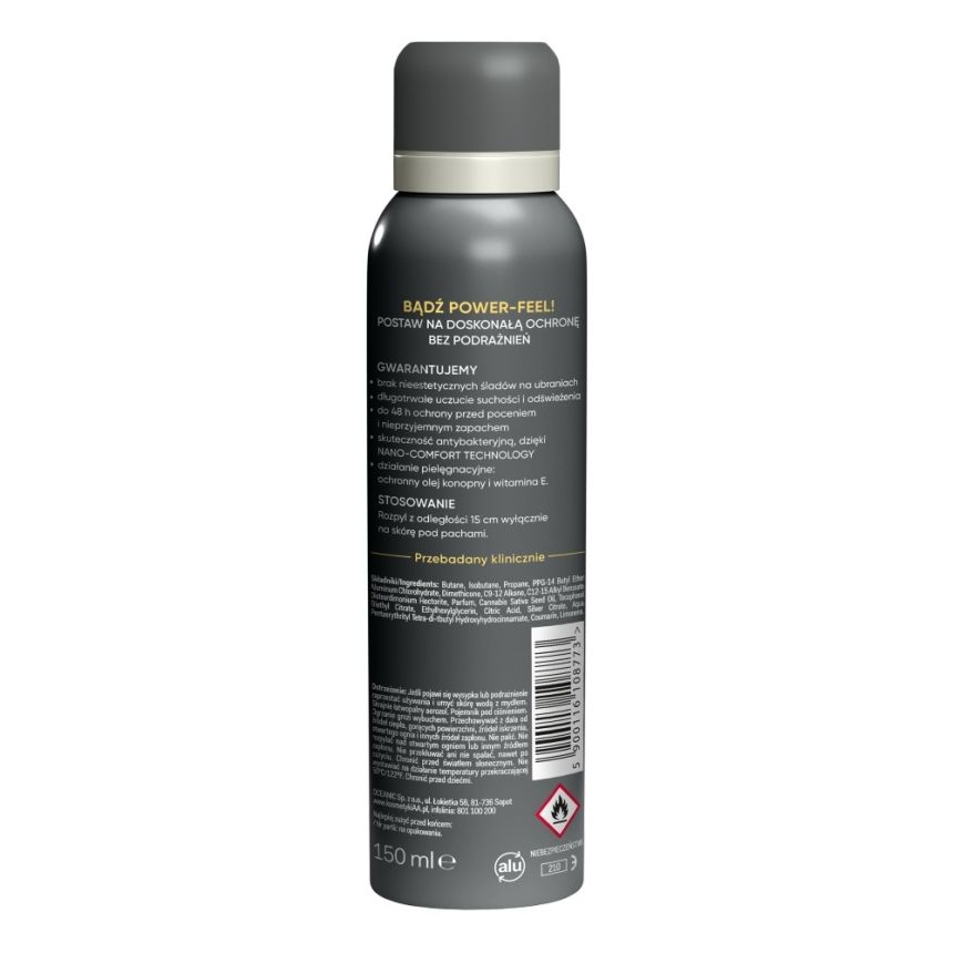 Formuła zapewnia długotrwałe uczucie suchości i odświeżenia oraz ochronę przed poceniem i nieprzyjemnym zapachem nawet do 48 godzin. Dzięki Nano-Comfort Technology działa antybakteryjnie, ograniczając rozwój bakterii odpowiedzialnych za zapach potu.
