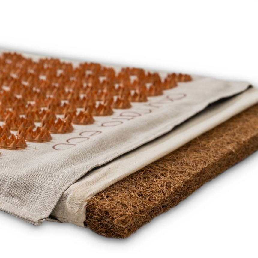 Akumata ECO marki Acus Med to wyjątkowy zestaw do akupresury, który łączy tradycyjną skuteczność terapii uciskowej z nowoczesnym, ekologicznym podejściem do zdrowia. Wykonana w Polsce z naturalnych, certyfikowanych materiałów – lnu, bawełny, włókna kokosowego i łusek gryki – mata z poduszką zapewnia w pełni bezpieczne, higieniczne i komfortowe warunki do relaksu oraz regeneracji organizmu.