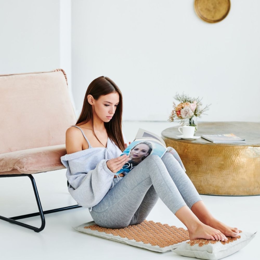 Akupresura polega na ucisku punktów nerwowych i receptorów na ciele poprzez specjalnie rozmieszczone kolce. Pobudza to krążenie krwi i limfy, wspomaga detoksykację organizmu oraz stymuluje wydzielanie endorfin – hormonów szczęścia. Regularne korzystanie z maty może pomóc:
