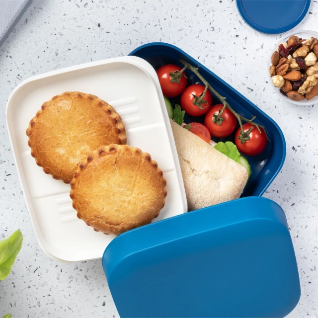Lunchbox jest idealnym rozwiązaniem do pracy, szkoły czy na wycieczkę. Elastyczna gumka zapewnia szczelne zamknięcie i chroni zawartość przed przypadkowym otwarciem. W upalne dni pojemnik na sos można zamrozić i wykorzystać jako wkład chłodzący, co pozwala dłużej utrzymać świeżość potraw.