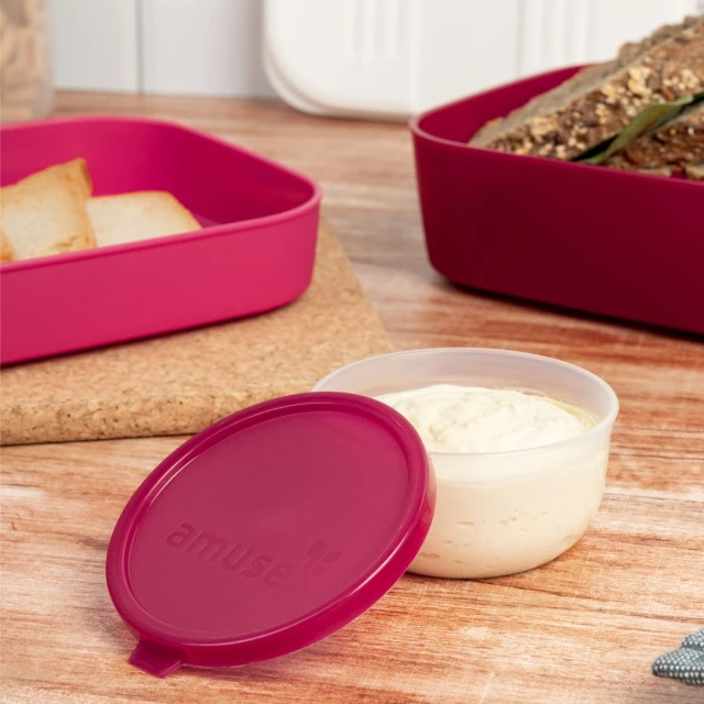 Amuse Lunchbox 3 w 1 to funkcjonalny pojemnik, który umożliwia wygodne przechowywanie i transportowanie posiłków. Dzięki dwóm osobnym komorom oraz tackom oddzielającym składniki, jedzenie zachowuje świeżość i nie miesza się podczas przenoszenia. Dołączony pojemniczek na sos pozwala na bezpieczne przewożenie dressingu czy dipów, zapobiegając ich wylewaniu.