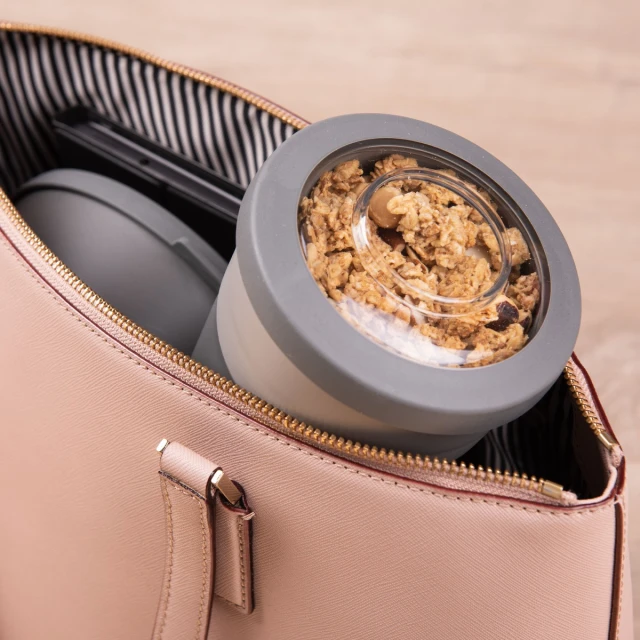 W zestawie znajduje się wielofunkcyjny sztuciec łyżkowidelec, który ułatwia wygodne jedzenie w dowolnym miejscu. Przezroczysta pokrywka umożliwia sprawdzenie zawartości bez konieczności otwierania.