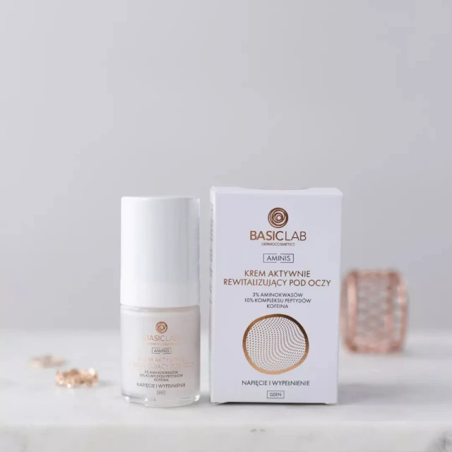 Aktywnie rewitalizujący krem pod oczy i na powieki o wysokiej zawartości aminokwasów i peptydów skutecznie redukuje oznaki starzenia, intensywnie nawilża oraz koi delikatną skórę wokół oczu. Dzięki składnikom wspomagającym mikrokrążenie, krem rozjaśnia cienie, redukuje opuchnięcia i nadaje spojrzeniu świeży, wypoczęty wygląd.