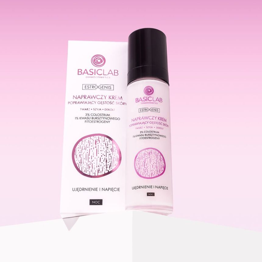 BasicLab Naprawczy krem poprawiający gęstość skóry na noc – Ujędrnienie i Napięcie