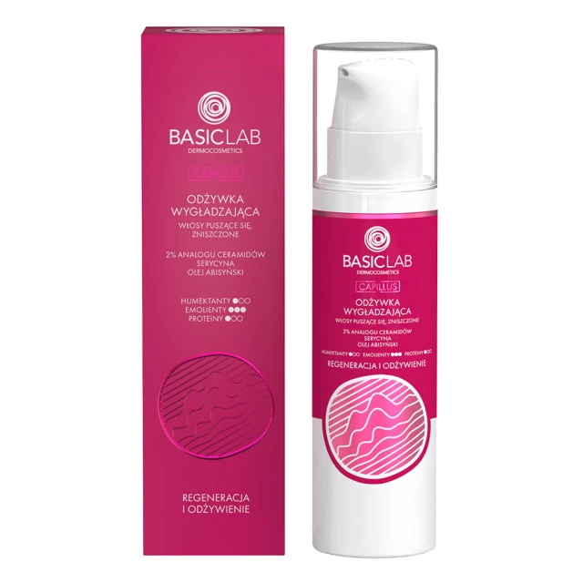 Odżywka wygładzająca z 2% analogu ceramidów, serycyną i olejem abisyńskim to innowacyjna formuła regeneracyjna, łącząca emolienty z humektantami, wzmacniającymi strukturę włosa. Przywraca równowagę, zdrowy wygląd oraz gładkość i elastyczność łuski. Poprawia kondycję włosów uszkodzonych i puszących się, przywracając blask. Tworzy ochronną powłokę, minimalizując ryzyko uszkodzenia pasm.