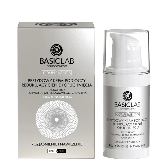 Peptydowy krem pod oczy o lekkiej konsystencji z 3% kofeiny, 1% kwasu traneksamowego oraz chryzyną to produkt, który zapewnia skórze wokół oczu świeży, promienny wygląd. Dzięki zawartości składników aktywnych, krem intensywnie nawilża, poprawia kondycję skóry i skutecznie przeciwdziała opuchnięciom oraz cieniom pod oczami. Delikatna formuła umożliwia także stosowanie produktu na powieki, co czyni go wyjątkowo wszechstronnym.