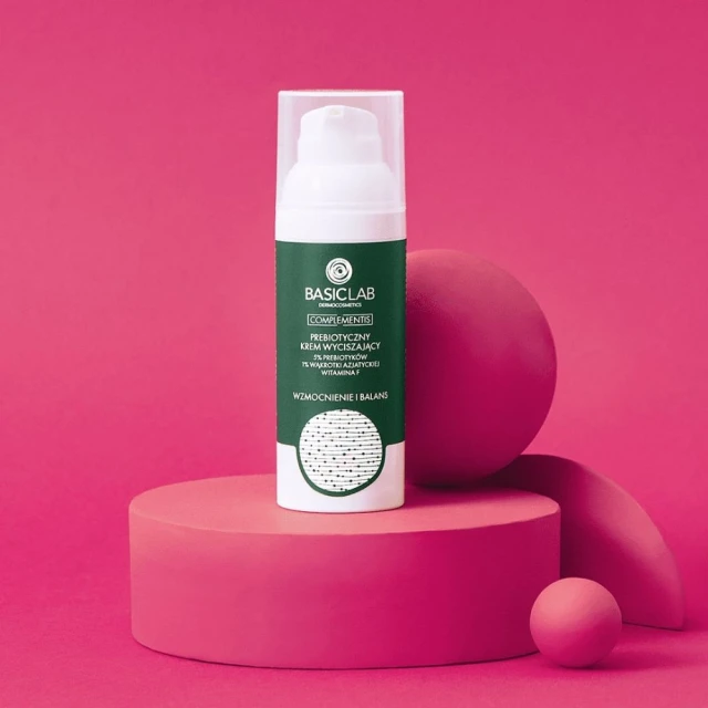 Prebiotyczny krem wyciszający to kompleksowy produkt, który przywraca równowagę mikrobiomu skóry, wspiera jej barierę hydrolipidową oraz skutecznie łagodzi podrażnienia. Jego formuła pomaga w walce z trądzikiem, normalizując wydzielanie sebum i przyspieszając regenerację naskórka. Krem długotrwale nawilża, nie pozostawiając tłustej warstwy, i stanowi doskonałe zwieńczenie pielęgnacji zarówno porannej, jak i wieczornej.