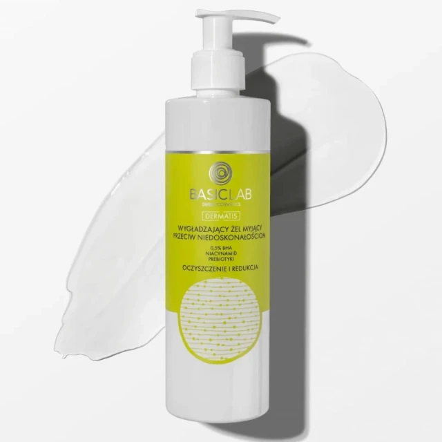 Wygładzający żel myjący przeciw niedoskonałościom z 0, 5% BHA wspomaga redukcję zmian trądzikowych na ciele (ramionach, plecach, udach, pośladkach), normalizuje wydzielanie sebum, łagodzi mikrozapalne zmiany oraz oczyszcza ujścia gruczołów łojowych (pory). Złuszczające działanie redukuje szorstkość naskórka i wspomaga pielęgnację skóry skłonnej do rogowacenia. Formuła o fizjologicznym pH nie narusza bariery hydrolipidowej skóry, pozostawiając uczucie komfortu i miękkości.