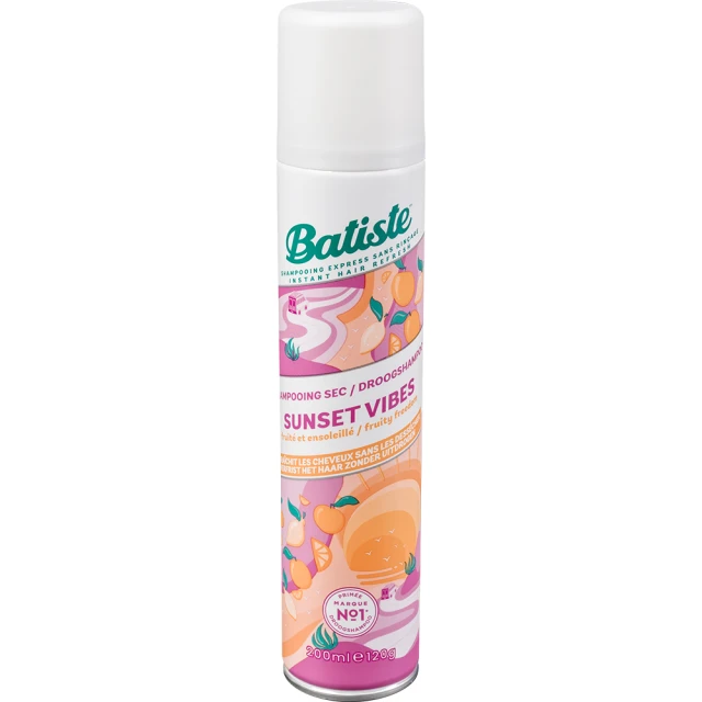 Batiste Dry Shampoo Sunset Vibes to suchy szampon, który w okamgnieniu przenosi nas na rozgrzaną plażę o zachodzie słońca. Już od pierwszego psiknięcia otula nas soczystą świeżością cytrusów i melonów, które przynoszą orzeźwienie i energię.