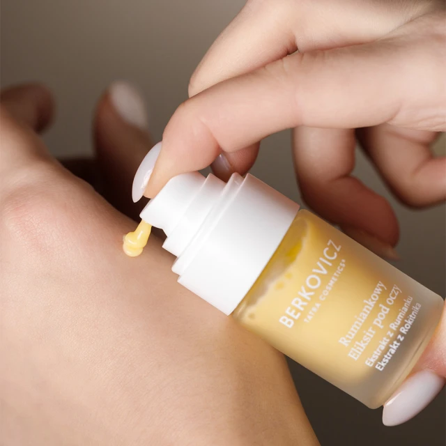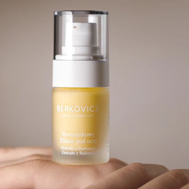 Rumiankowy Eliksir pod oczy to intensywnie nawilżający i rozjaśniający preparat stworzony dla osób borykających się z oznakami zmęczenia, cieniami, opuchlizną i wiotkością skóry wokół oczu. Dzięki starannie dobranym składnikom aktywnym skutecznie pielęgnuje delikatną skórę, przywracając jej świeżość i młodzieńczy wygląd.