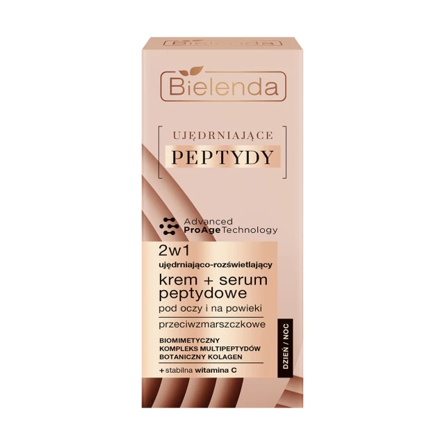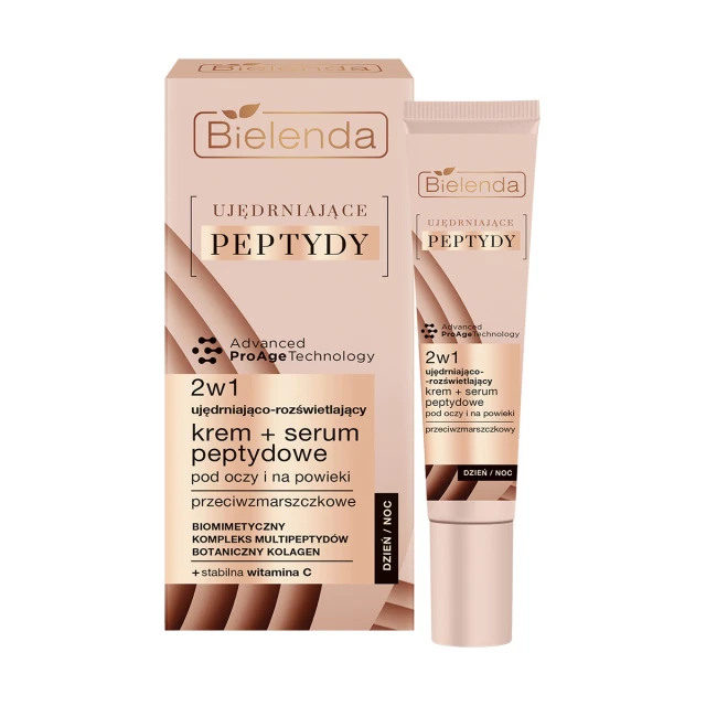 Specjalnie opracowane Eye Ultra Peptydy skupiają się na delikatnej skórze wokół oczu, poprawiając jej jędrność i elastyczność, zwalczając worki i cienie. Dodatkowo, Botaniczny Kolagen wzmacnia strukturę skóry, a stabilna Witamina C ujędrnia, poprawiając koloryt i zmniejszając cienie. Krem + serum 2w1 ujędrnia i napina skórę wokół oczu, redukuje worki i cienie, dodając blasku spojrzeniu. Regularne stosowanie poprawia jędrność, wygładza zmarszczki, zapewnia efekt liftingu, zmniejsza cienie i dodaje blasku spojrzeniu.