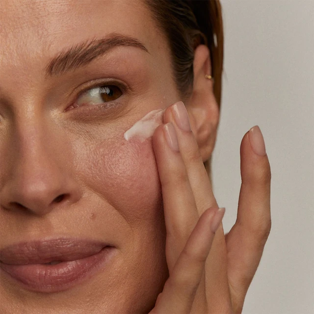 Delikatnie nanieś jedną pompkę produktu na suchą, oczyszczoną skórę pod oczami.