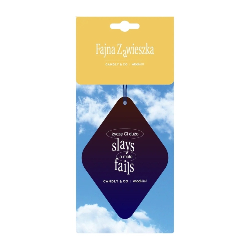 Candly & Co x Wedel Tag Życzę Ci dużo slays, a mało fails to zawieszka zapachowa, która dodaje lekkości i poprawia nastrój już samym hasłem. Przypomina, że nie trzeba być perfekcyjnym, żeby mieć dobry dzień. Wystarczy chwila dla siebie i trochę słodyczy w powietrzu.