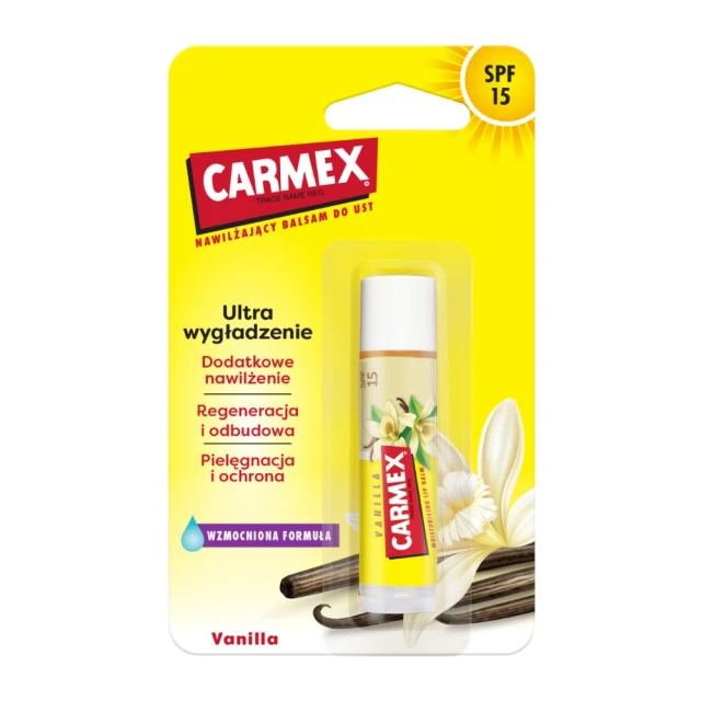 Kremowy sztyft waniliowy CARMEX pomaga utrzymać miękkość i gładkość ust. Buziaki!