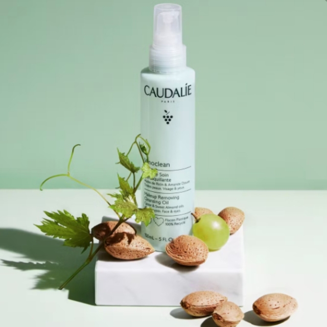Olejek do demakijażu Caudalie Vinoclean to koktajl odżywczych olejów roślinnych w 100% naturalnego pochodzenia (słodkie migdały, olejek rycynowy, oleje z pestek winogron i słonecznika).