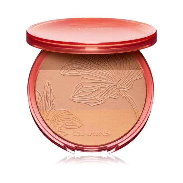 Nakładaj bronzer Clarins Bronzing Compact Powder na twarz i szyję delikatnymi ruchami ku górze. Aby uzyskać lepszą teksturę, nałóż szczyptę najintensywniejszego odcienia w zagłębienia kości policzkowych, szczyt czoła, grzbiet nosa i brodę.