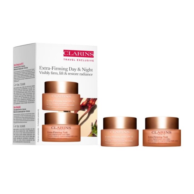 Clarins Extra-Firming Day & Night Set to doskonały duet pielęgnacyjny, który wspiera skórę w walce z widocznymi oznakami starzenia – przez całą dobę. Zestaw zawiera dwa pełnowymiarowe kremy: jeden na dzień, drugi na noc, które ujędrniają, wygładzają i regenerują skórę, przywracając jej promienny, młodzieńczy wygląd.