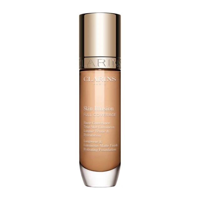 Clarins Skin Illusion Full Coverage Foundation to podkład o wysokim stopniu krycia, który łączy perfekcyjny makijaż z pielęgnacją skóry. Zapewnia 24-godzinną * trwałość, wodoodporność i odporność na pot oraz ścieranie, dzięki czemu doskonale sprawdzi się w każdej sytuacji – od codziennych wyzwań po intensywne emocje.