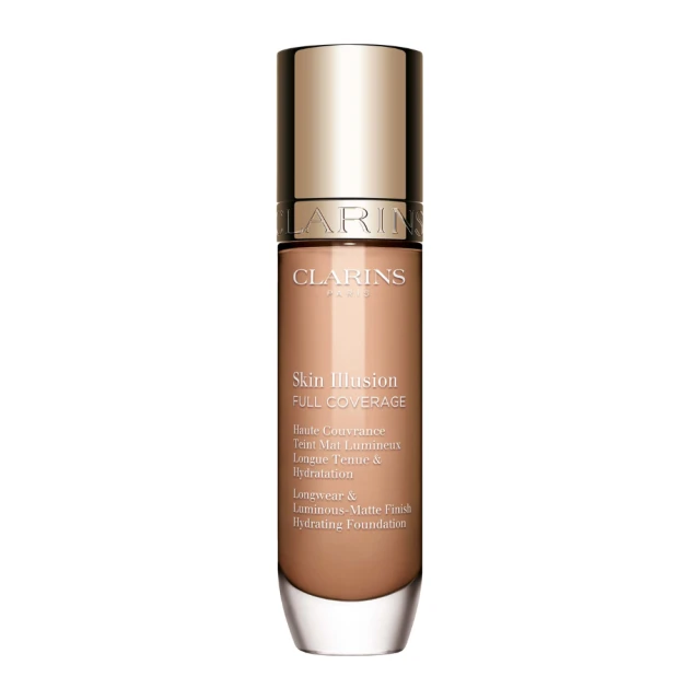 Clarins Skin Illusion Full Coverage Foundation to podkład o wysokim stopniu krycia, który łączy perfekcyjny makijaż z pielęgnacją skóry. Zapewnia 24-godzinną * trwałość, wodoodporność i odporność na pot oraz ścieranie, dzięki czemu doskonale sprawdzi się w każdej sytuacji – od codziennych wyzwań po intensywne emocje.