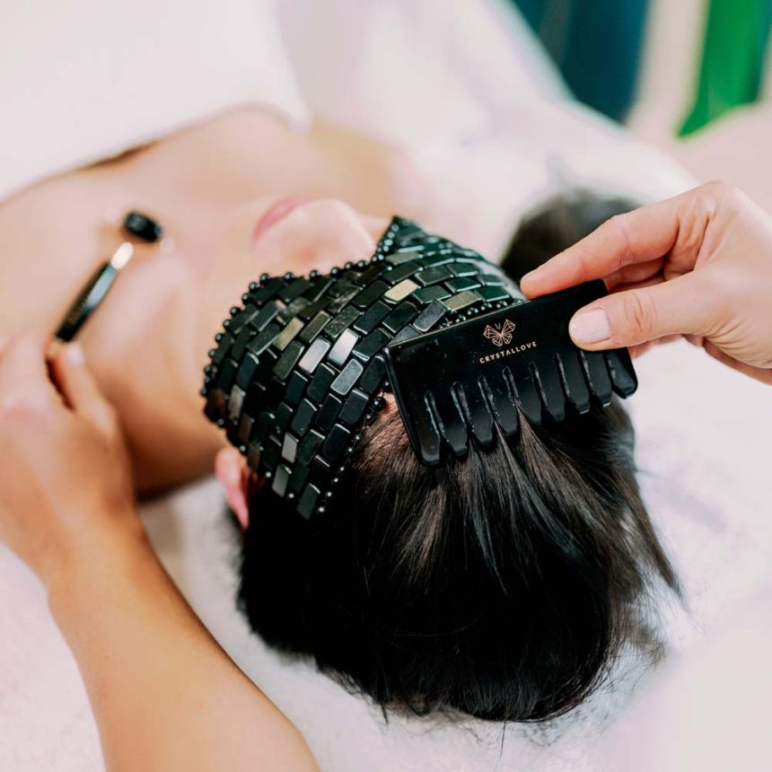 Stwórz swój domowy rytuał pielęgnacyjny za pomocą luksusowych produktów do masażu twarzy i ciała marki CRYSTALLOVE. Grzebień do masażu skóry głowy i body combingu inspirowany jest niezwykłymi właściwościami oraz pięknem kamieni naturalnych. Wykonany ręcznie z czarnego obsydianu.