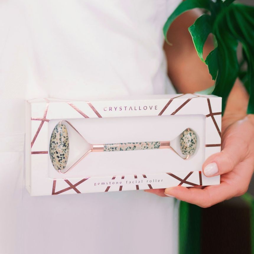 Stwórz swój własny rytuał pielęgnacyjny za pomocą luksusowego masażera do twarzy z jaspisu dalmatyńskiego marki CRYSTALLOVE. Naturalny chłód kamienia, z którego wykonany jest masażer, redukuje opuchliznę i cienie pod oczami, skóra nabiera blasku i świeżości, poprawia się jej elastyczność. Masaż rollerem z kamienia stymuluje drenaż limfatyczny wspomagając oczyszczanie skóry z toksyn, łagodzi napięcie mięśni twarzy. Zmarszczki i drobne linie spłycają się. Dodatkowo każdy kamień posiada swoją naturalną i niepowtarzalną barwę, wyjątkowe właściwości, energia kamienia uspokaja i przynosi równowagę. Masażer CRYSTALLOVE idealny do wszystkich typów cery.