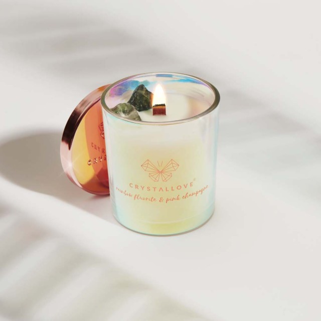 Przed zapaleniem ustaw świece na stabilnej i żaroodpornej powierzchni. Przytnij drewniany knot do 6mm (1/4 cala) przed każdym zapaleniem świecy. Zalecamy palenie nie więcej niż cztery godziny na raz oraz wyjęcie bryłek fluorytu tęczowego ze świecy jeszcze przed paleniem lub na początku palenia, kiedy wosk zaczyna się dopiero roztapiać. Kamienie zachowaj dla siebie, na szczęście. Czas palenia świecy wynosi około 45 godzin.