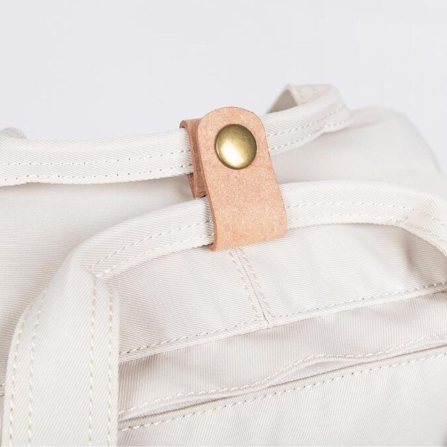 Ergonomiczne, regulowane szelki są miękko wyściełane, co zapewnia komfort nawet przy dłuższym noszeniu. Skórzane detale z recyklingu – paski i klamra spinająca rączki – podkreślają jakość wykonania. Metalowe sprzączki i napy dodają wytrzymałości i stylowego charakteru.
