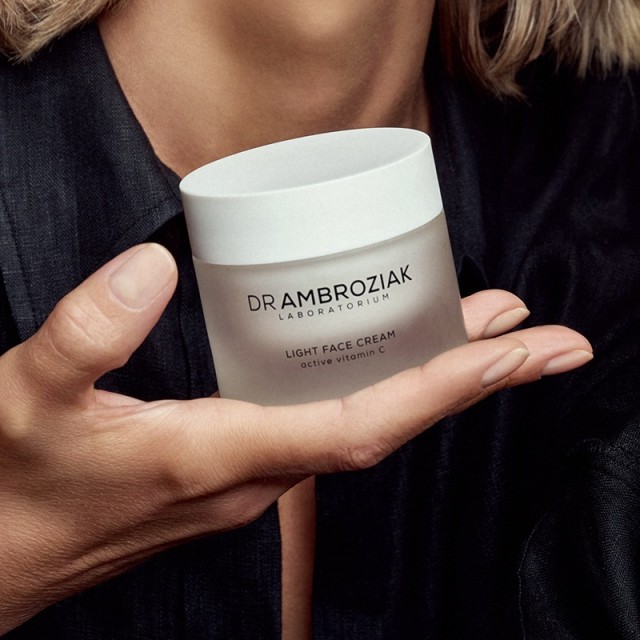 Zobacz różnicę, jaką robi stosowanie Light Face Cream Dr Ambroziak Laboratorium z aktywną witaminą C. Lekki, a jednocześnie intensywnie nawilżający krem został stworzony z myślą o skórze skłonnej do przesuszania i utraty sprężystości. Dzięki Light Face Cream Twoja cera odzyska odświeżenie, blask i sprężystość.