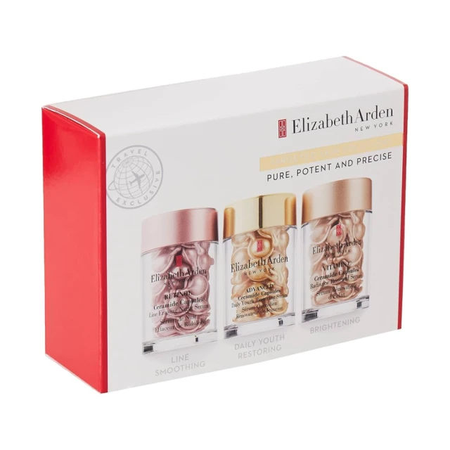 Elizabeth Arden Ceramide Capsules Trio Set to luksusowy zestaw kapsułek pielęgnacyjnych, które łączą moc ceramidów z zaawansowanymi składnikami aktywnymi, aby zapewnić skórze młodzieńczy wygląd, intensywne nawilżenie i zdrowy blask. Każda kapsułka to precyzyjna dawka skoncentrowanych składników, zamknięta w biodegradowalnej osłonce, która chroni ich skuteczność.