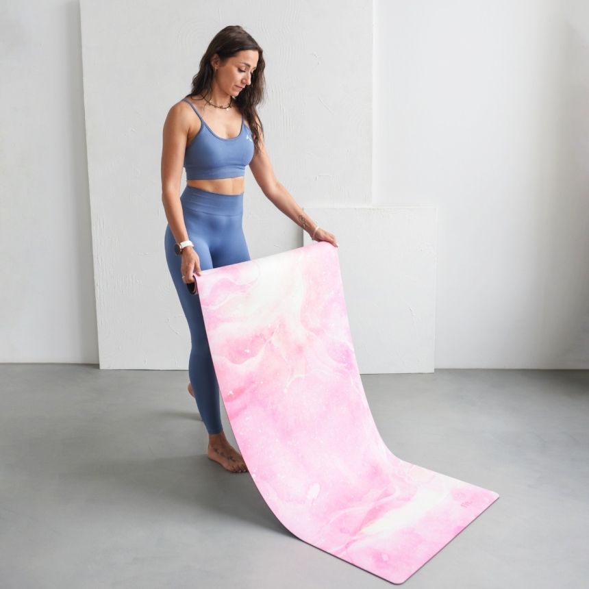 Mata łatwo się składa, nie zajmuje dużo miejsca i zmieści się w torbie podróżnej lub plecaku. Idealnie sprawdzi się zarówno podczas zajęć w studio, jak i w podróży. Jej symboliczny wzór galaktyki doda Ci energii i inspiracji w czasie praktyki.