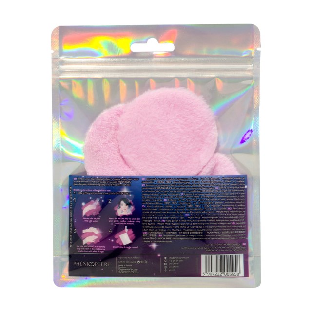 Jak zmyć makijaż przy pomocy GLOV MOON PADS: Nasącz wielorazowy płatek kosmetyczny ciepłą wodą lub ulubionym produktem do demakijażu, np. olejkiem. Na kilka sekund przyłóż do powierzchni twarzy, na której chcesz wykonać demakijaż - woda lub inny produkt rozpuszczą kosmetyki. Delikatnym ruchem zbierz pozostałości po makijażu. Po użyciu wypierz produkt ręcznie przy pomocy wody i mydła lub w pralce. Produkt został zarejestrowany przez organizację Vegan Society jako wegański - w składzie nie zawiera materiałów pochodzenia odzwierzęcego i nie jest testowany na zwierzętach. Można prać w pralce w temp. maks. 30 stopni, bez dodatku środka zmiękczającego.