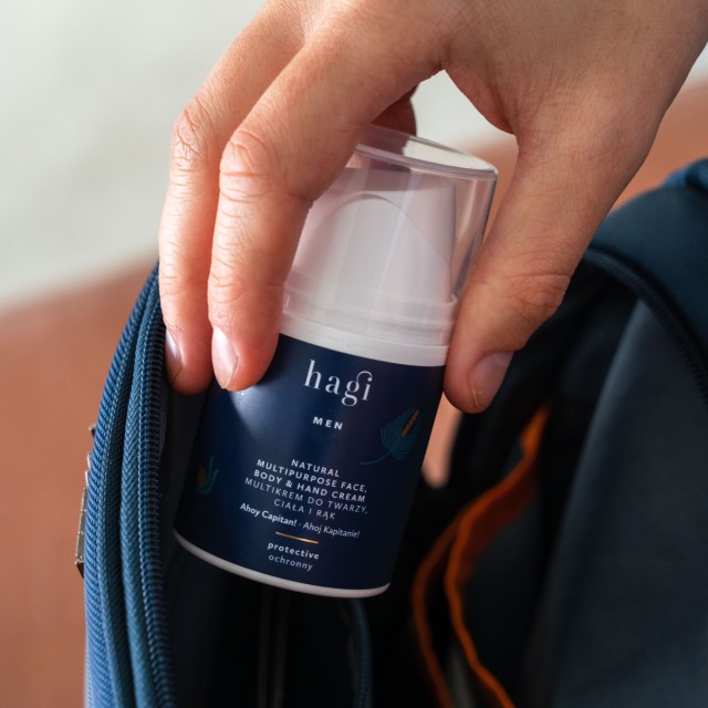Nawilżająca i ochronna kuracja do twarzy, rąk i ciała dla mężczyzn. Mieszanka naturalnych składników – kwasu hiarulonowego, skwalanu, biofermentu z bambusa, inuliny oraz morskich ekstraktów z bursztynu, sosny i alg w połączeniu z olejem jojoba oraz masłem mango odpowie na potrzeby Twojej skóry smaganej wiatrem, słońcem oraz światłem ekranu komputera. Posmarowany? Ruszaj na przygodę!