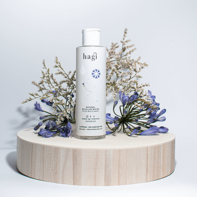 Naturalny płyn micelarny pozwala na skuteczne pozbycie się zanieczyszczeń i makijażu z twarzy, oczu i szyi nie naruszając warstwy ochronnej naskórka. Zawiera nawilżającą betainę, roślinną glicerynę, a także skuteczny niskomolekularny kwas hialuronowy. Mieszanka alg i ekstraktu z bławatka pozwala na ukojenie nawet wrażliwej skóry.