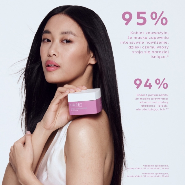 Rozprowadź maskę równomiernie na wilgotnych włosach i delikatnie wmasuj w pasma. Pozostaw na 5–10 minut, a następnie spłucz. Dla najlepszych efektów uzupełnij pielęgnację o pozostałe produkty HDREY.