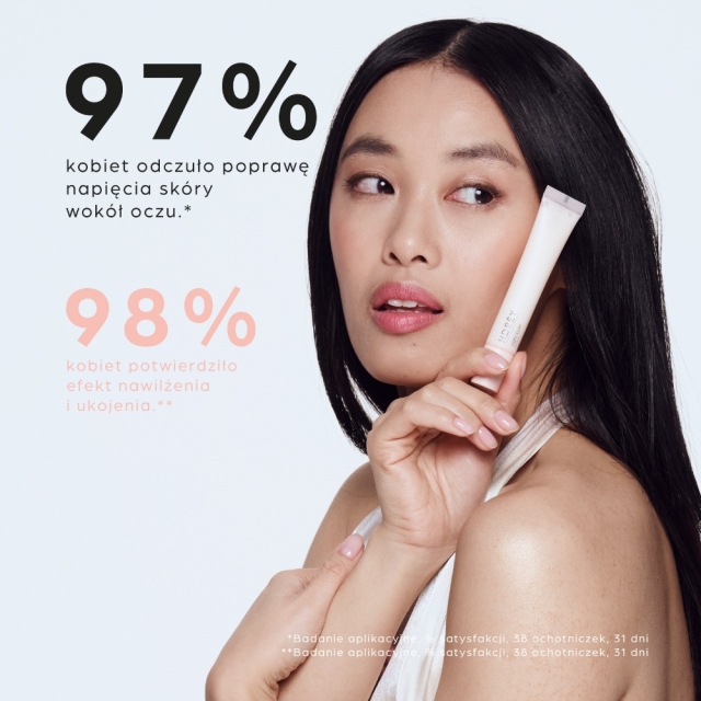 Krem intensywnie nawilża, napina skórę oraz niweluje oznaki zmęczenia, nadając spojrzeniu świeżości i blasku. Regularne stosowanie wspomaga regenerację, chroni przed utratą wilgoci oraz wspiera naturalne procesy odnowy naskórka. To doskonały wybór dla osób poszukujących skutecznego, a jednocześnie delikatnego kosmetyku do codziennej rutyny pielęgnacyjnej.
