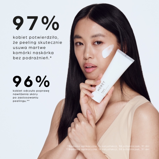 Nałóż peeling na oczyszczoną skórę twarzy, omijając okolice oczu. Pozostaw na 5 minut, następnie delikatnie masuj i spłucz letnią wodą. Stosuj codziennie lub co drugi dzień. Dla najlepszych efektów uzupełnij codzienną pielęgnację o pozostałe produkty z serii HDREY.
