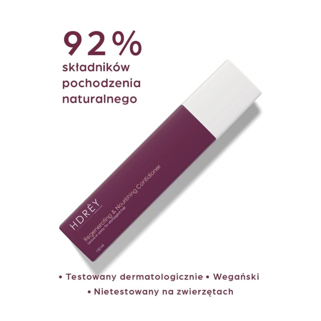 HDREY Regenerating & Nourishing Conditioner Leave-in to lekka, regenerująca odżywka bez spłukiwania, wzbogacona kompleksem Genesis HPS3®. Dzięki zawartości biotyny dba o zniszczone włosy, nawilżając je i wygładzając. Odżywka ułatwia rozczesywanie, niweluje puszenie włosów i dzięki bogatej, naturalnej formule pozostawia je miękkie, lśniące oraz odżywione. Dodatkowo chroni włosy przed gorącym powietrzem podczas stylizacji.