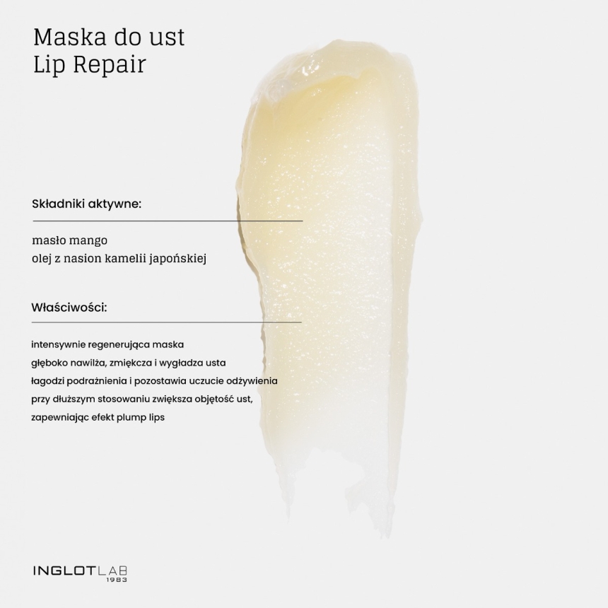 Intensywnie regenerująca Maska Do Ust Lip Repair, która wnikliwie nawilża, uelastycznia i wygładza usta już po pierwszym zastosowaniu. Doskonale uzupełnia codzienną rutynę pielęgnacyjną zarówno w ciągu dnia, jak i nocy. Odżywia oraz przynosi ulgę suchym, popękanych ustom, oferując długotrwałe uczucie komfortu. Regularne stosowanie maski sprzyja zwiększeniu objętości ust, nadając efekt pełniejszych warg. Subtelny aromat i słodki smak sprawiają, że każda aplikacja nie tylko jest niezwykle łatwa, ale także wyjątkowo przyjemna.
