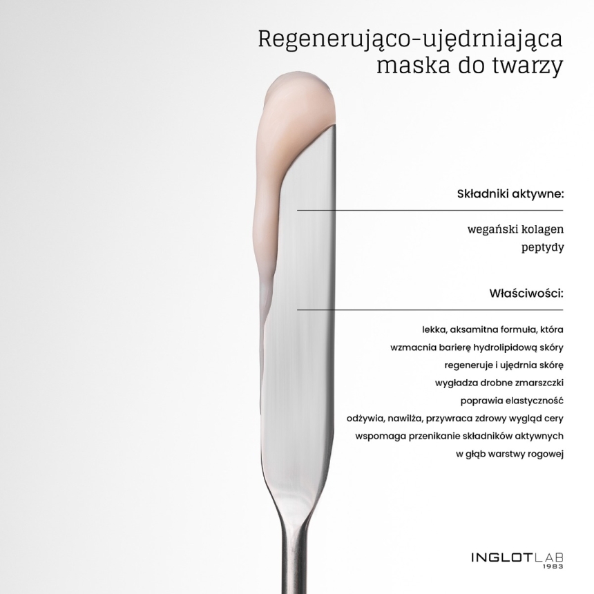 Inglot LAB Regenerating & Lifting Face Mask to maska o 98% składników pochodzenia naturalnego, która pomaga skórze odzyskać sprężystość i komfort. Ma lekką, aksamitną konsystencję, łatwo się rozprowadza i tworzy delikatną warstwę ochronną. Wzmacnia barierę hydrolipidową, ogranicza transepidermalną utratę wody i wspiera przenikanie składników aktywnych w głąb warstwy rogowej. Sprawdza się jako intensywna pielęgnacja nocna, gdy skóra potrzebuje regeneracji i ukojenia.