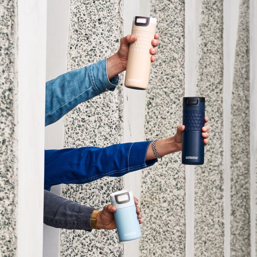 Nakrętka jest kompatybilna z innymi modelami kubków i butelek Kambukka, a jej części można myć w zmywarce, co ułatwia codzienną pielęgnację. Kubek natomiast należy myć ręcznie. Etna nie zawiera BPA, co czyni go bezpiecznym w użytkowaniu.