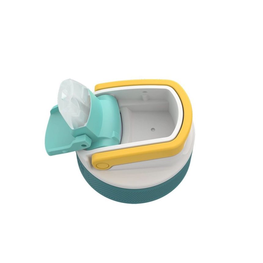 Model został wyposażony w wygodny ustnik oraz zakrzywioną słomkę, które umożliwiają picie bez konieczności odchylania głowy do tyłu. To praktyczne rozwiązanie szczególnie podczas jazdy samochodem, rowerem lub w czasie ćwiczeń. Ustnik znajduje się pod osłoną ochronną, która pomaga zachować higienę i dodatkowo zabezpiecza butelkę przed zabrudzeniami.