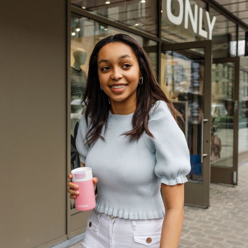 Kubek ten wyróżnia się praktyczną nakrętką z przyciskiem, który umożliwia łatwe i intuicyjne korzystanie. Wystarczy jedno naciśnięcie, aby się napić, a kolejne, by zamknąć kubek i zapewnić 100% szczelności. Nakrętkę można myć w zmywarce, co ułatwia codzienne użytkowanie, natomiast sam kubek zaleca się myć ręcznie .