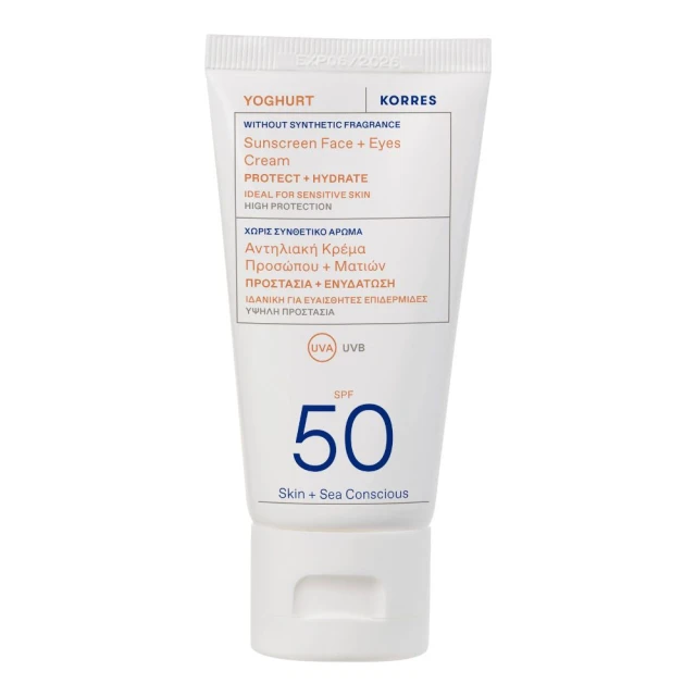 Lekki krem-że l do twarzy i okolic oczu z filtrem przeciwsłonecznym SPF50. Nie zawiera syntetycznego zapachu. Dostarcza skórze długotrwałe, aktywne nawilżenie i optymalne uczucie komfortu. Zapewnia szerokie spektrum ochrony przed promieniowaniem UVA/UVB, chroniąc skórę przed fotostarzeniem oraz zanieczyszczeniami miejskimi. Bardzo dobrze tolerowany przez skórę pod oczami. Wzbogacony jogurtem, naturalnym źródłem protein, biofermentem szałwii muszkatołowej i pantenolem dla zdrowo wyglądającej skóry.