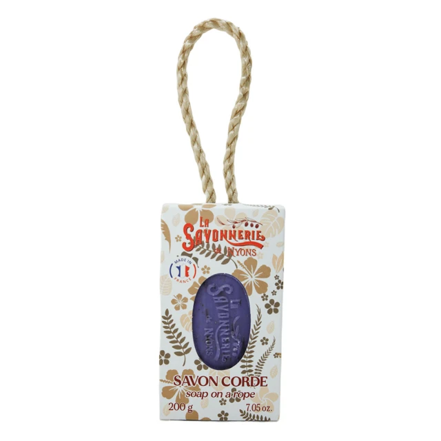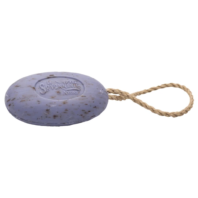 Ręcznie wykonane mydło do peelingu na sznurku La Savonnerie de Nyons z suszonymi kwiatami lawendy oczyszcza pory skóry i ułatwia złuszczanie martwych komórek naskórka, pozostawiając skórę delikatnie pachnącą. Naturalny peeling eliminuje górne warstwy naskórka i martwe komórki, stymulując regenerację komórek i pozostawiając skórę miękką oraz gładką.