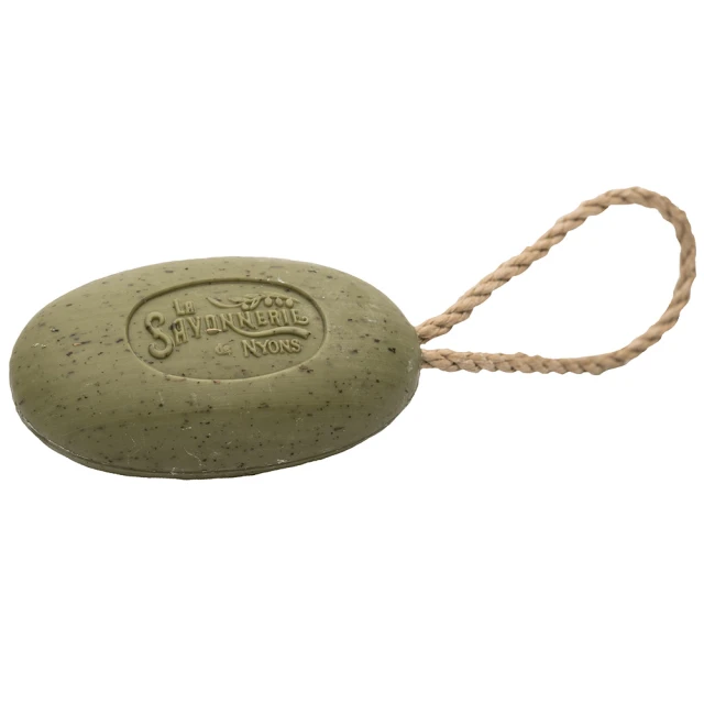 Ręcznie wykonane mydło do peelingu na sznurku La Savonnerie de Nyons z zmielonymi pestkami oliwek skutecznie oczyszcza pory i ułatwia złuszczanie martwych komórek naskórka, pozostawiając skórę delikatnie pachnącą. Naturalny peeling usuwa martwe komórki i górne warstwy naskórka, wspierając regenerację oraz zapewniając skórze miękkość i gładkość.