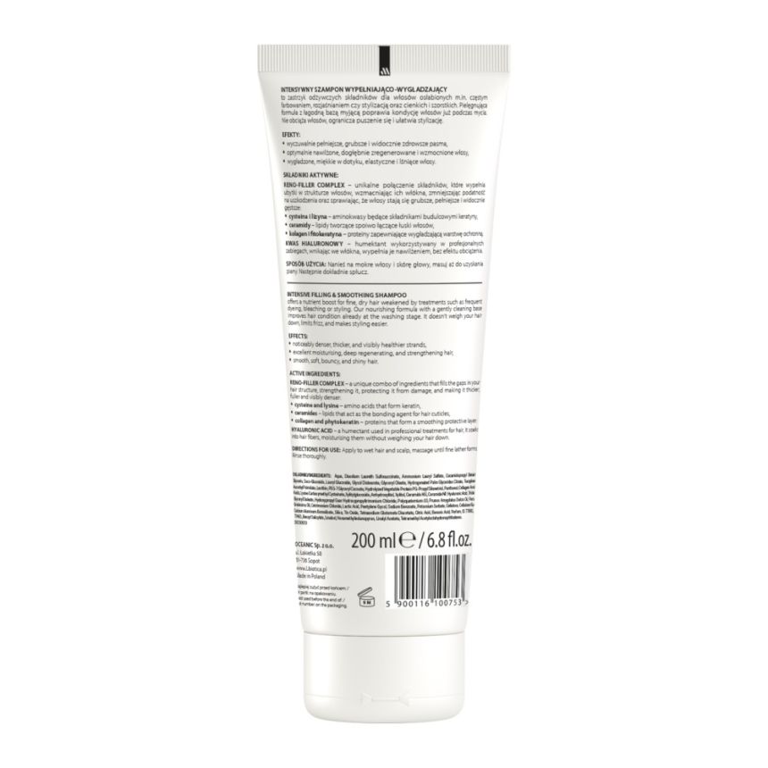 Formuła oparta na Reno-Filler Complex skutecznie wypełnia ubytki w strukturze włosa i wzmacnia jego włókna. Dzięki temu pasma stają się grubsze, bardziej odporne na uszkodzenia i wyraźnie wygładzone.